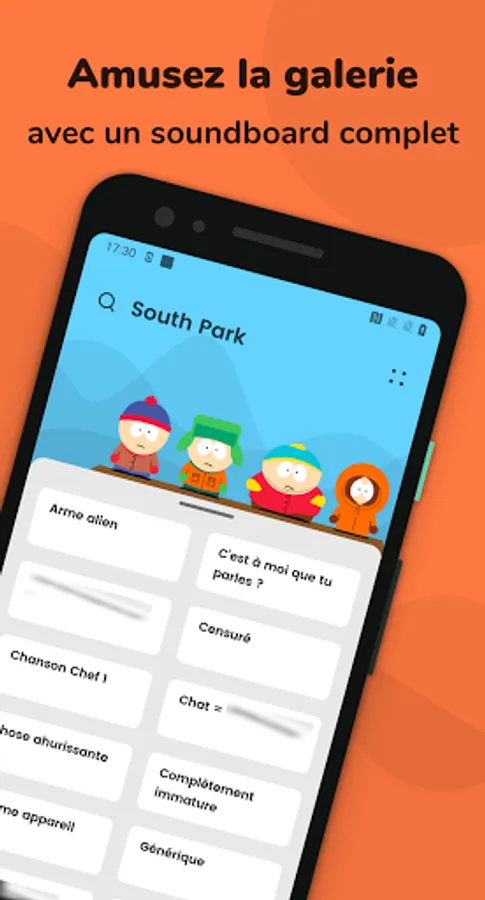 ⢠Over 40 clips from Season 1 of South Park presented in an elegant soundboard.