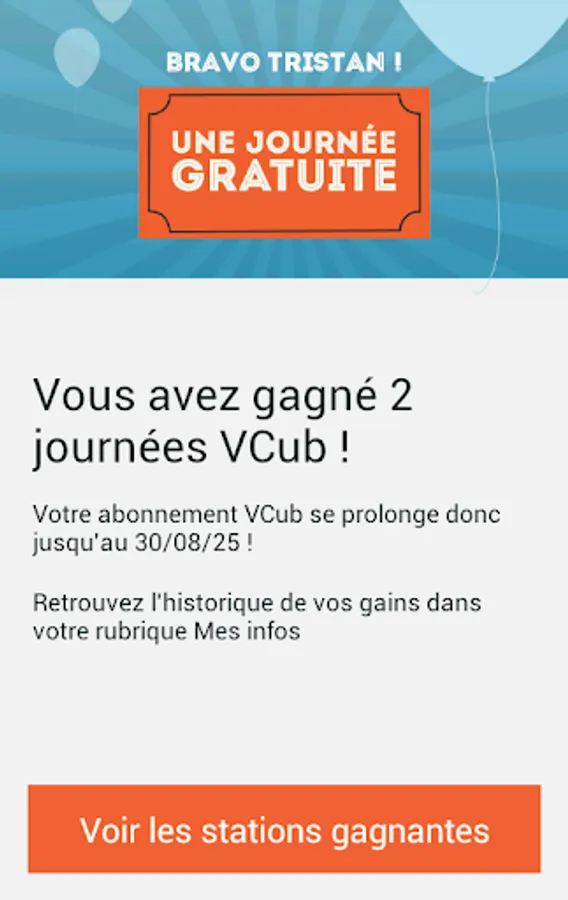 If you are a monthly or annual V3 subscriber, register your Tbc TBM or Modalis card number in the app, find a winning station and extend your subscription for free!