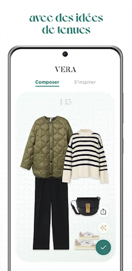 VERA takes into account your tastes and offers you new personalized outfit combinations.
