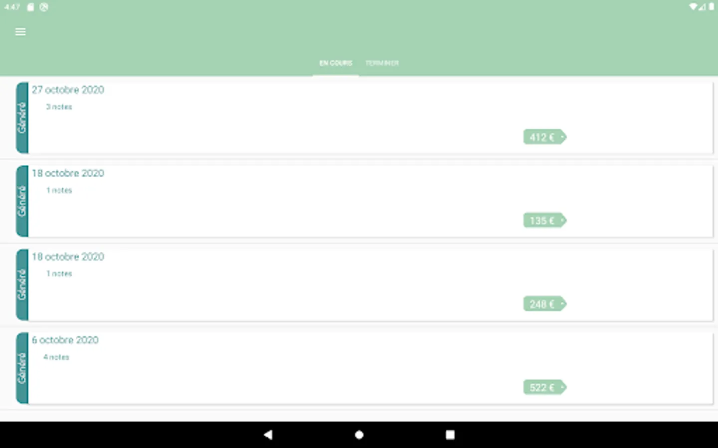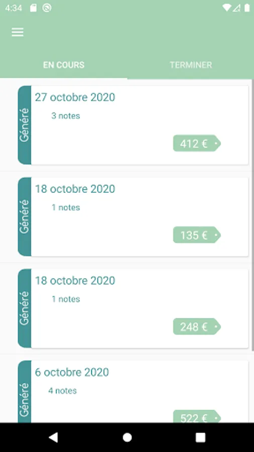 - Consultation of the summary sheets of the notes generated by the accounts at the end of the month (Generated, Accounting).
