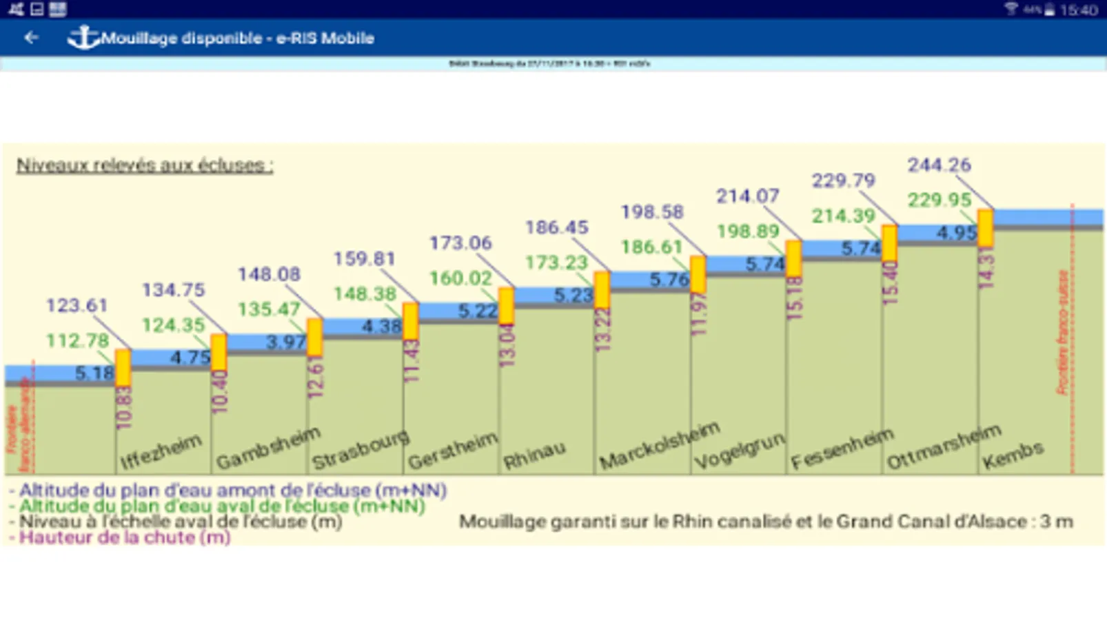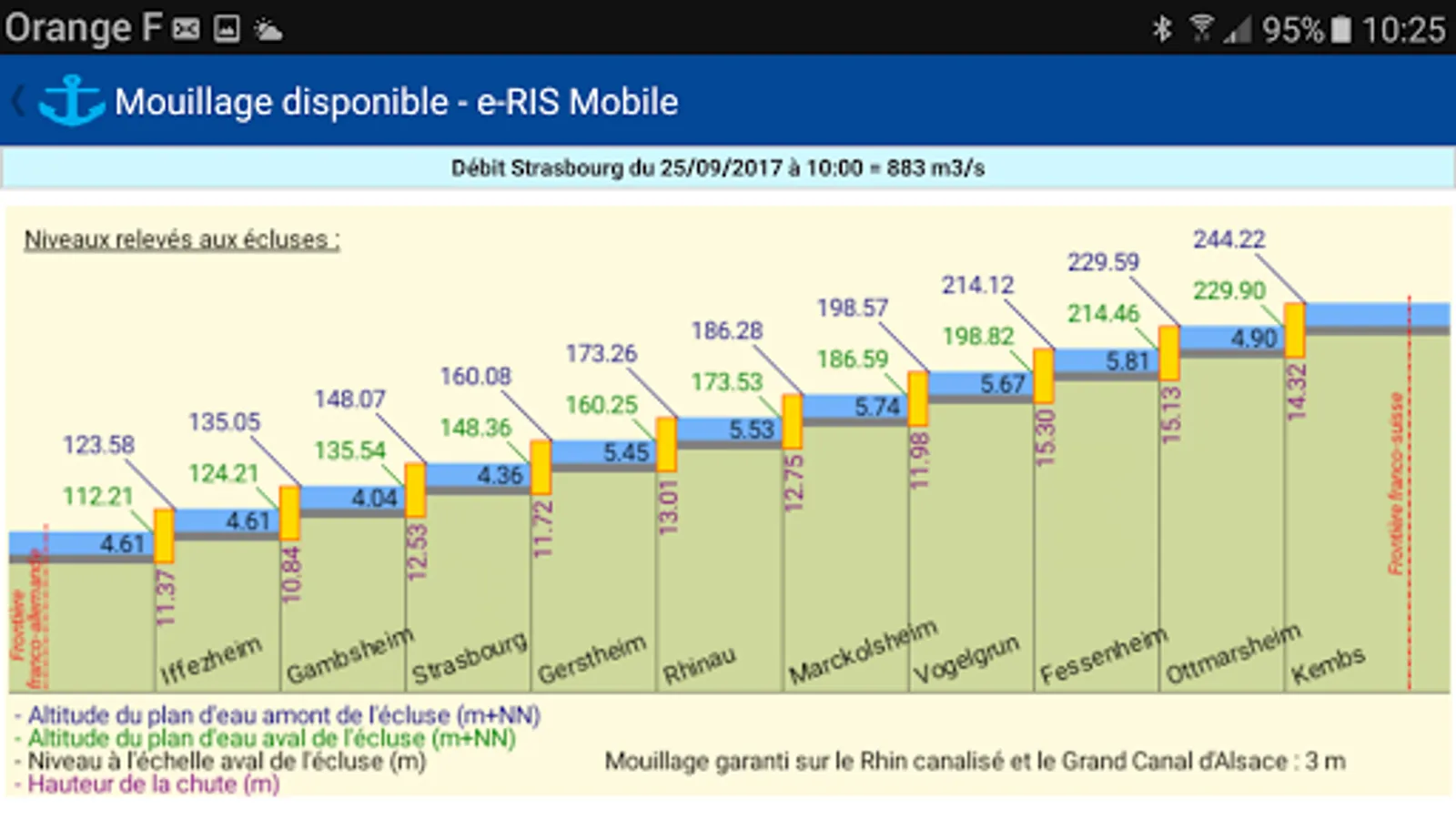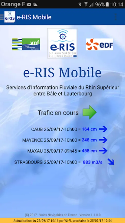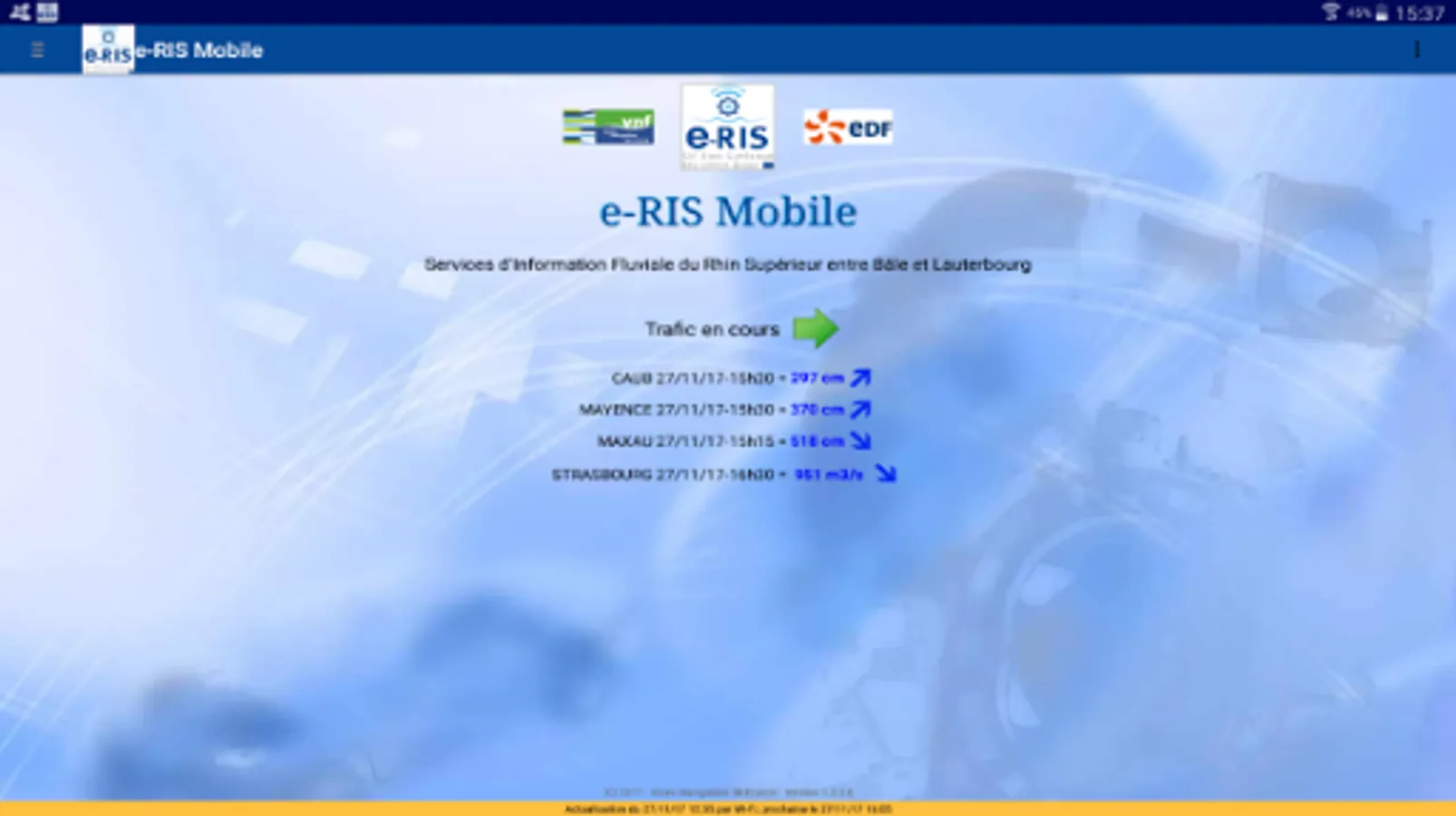 The e-RIS Mobile application is the result of a partnership between the Waterways of France (VNF) and Electricite de France (EDF) to offer users the Upper Rhine river information services to improve navigation between Basel Lauterbourg.