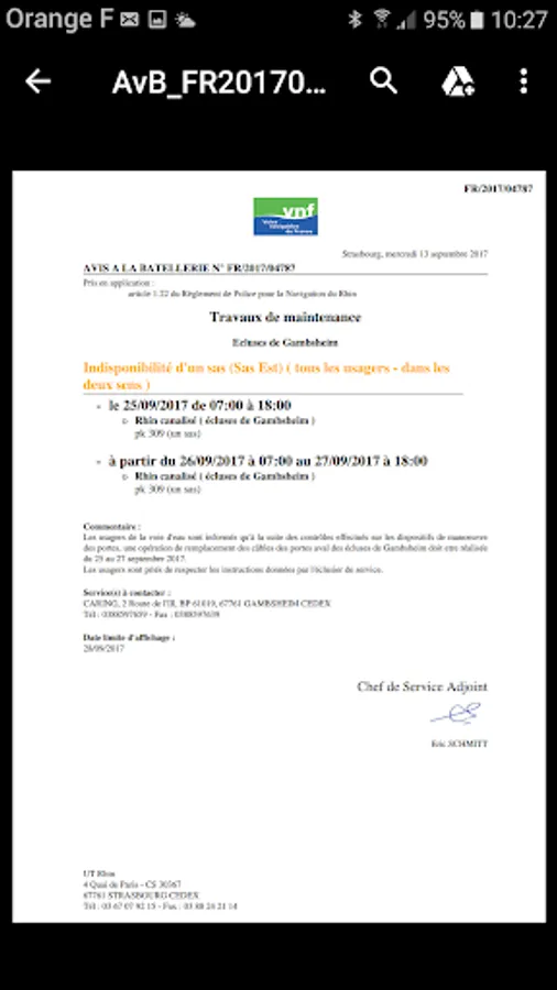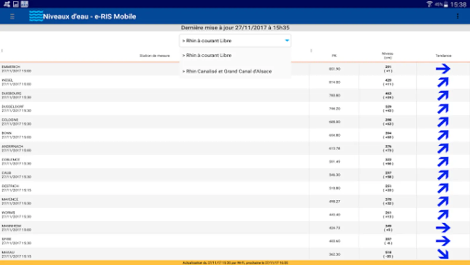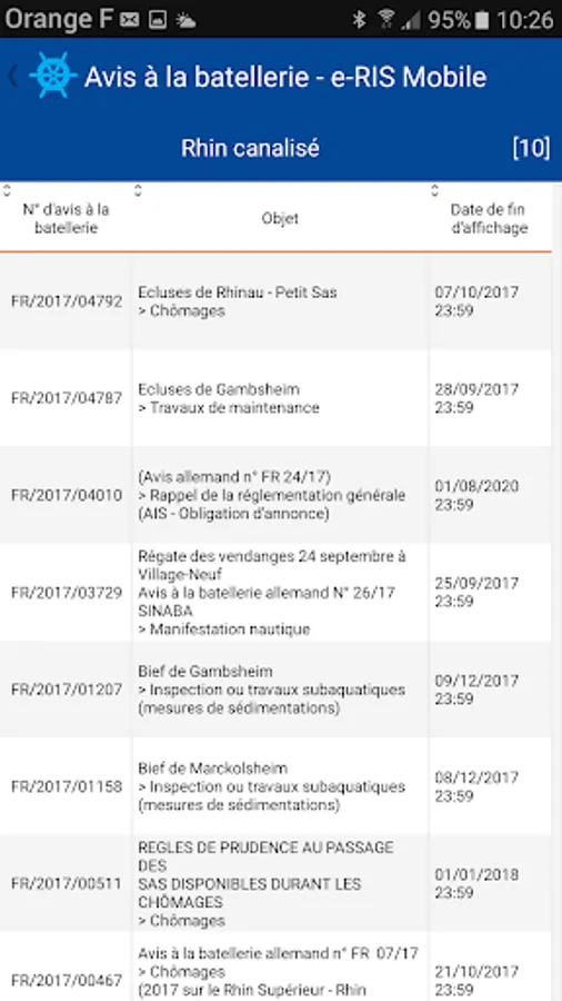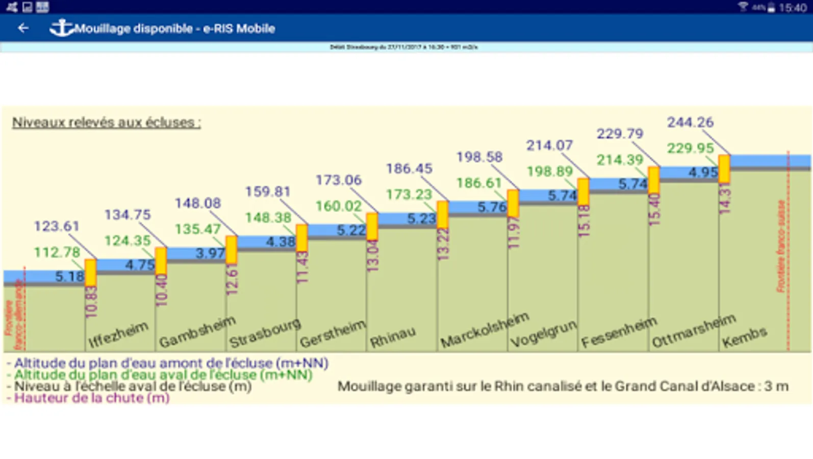 The e-RIS Mobile application is the result of a partnership between the Waterways of France (VNF) and Electricite de France (EDF) to offer users the Upper Rhine river information services to improve navigation between Basel Lauterbourg.