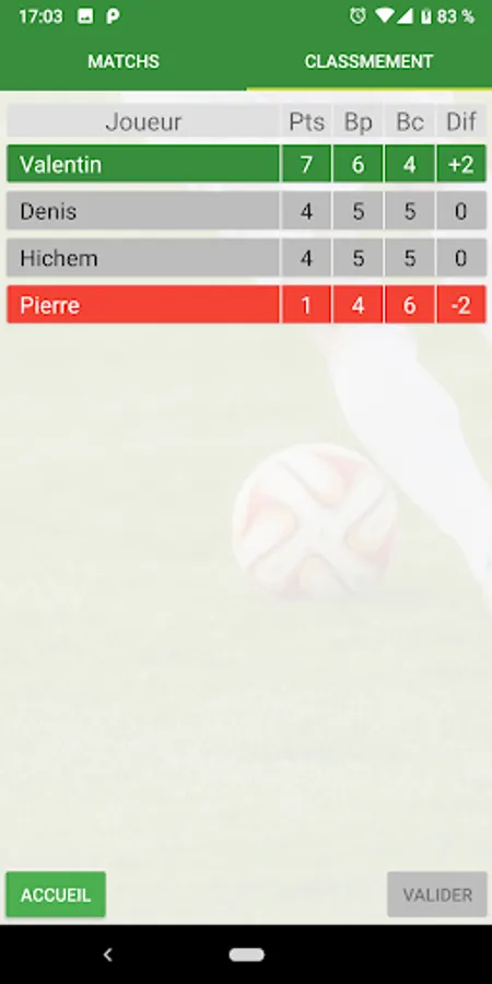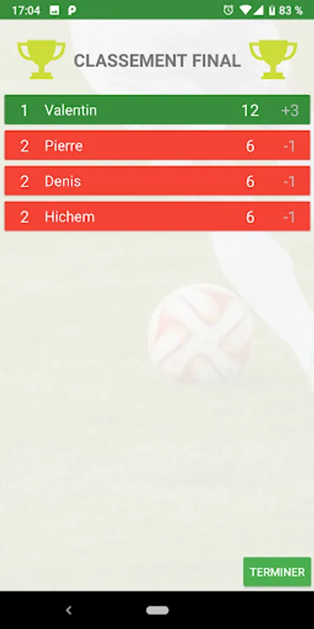 - Possibility to see the current ranking of a tournament
