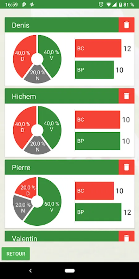 - Management of the list of participants with their statistics (Number of wins and losses)