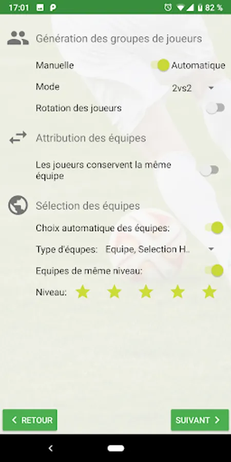 - Possibility to automatically generate the selection of football teams, based on several criteria