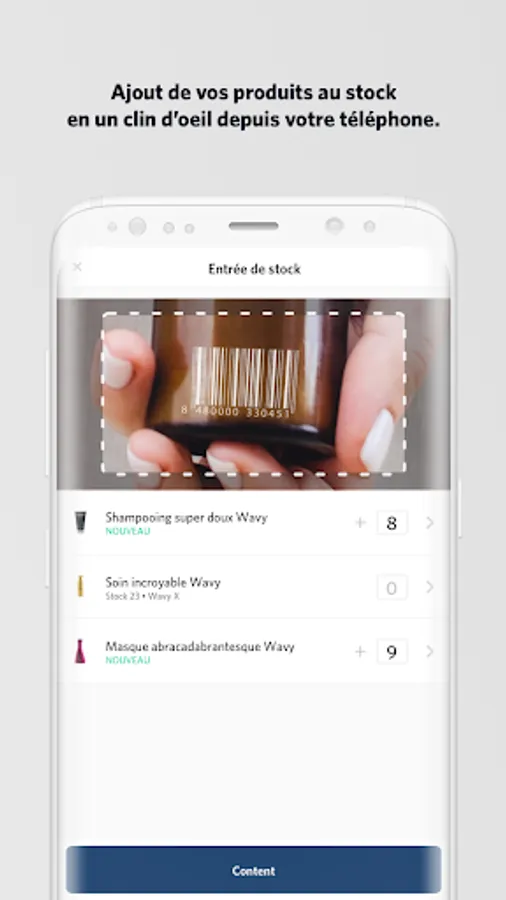 No more shower! Take your phone, open your Wavy checkout app and scan your products in record time.