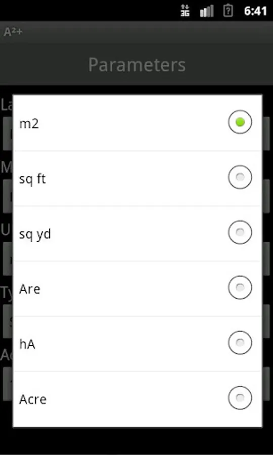 The display area may be: m2, square feet, square yard, Acre, are and hectare.