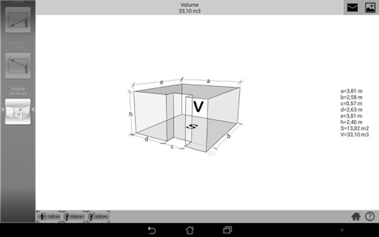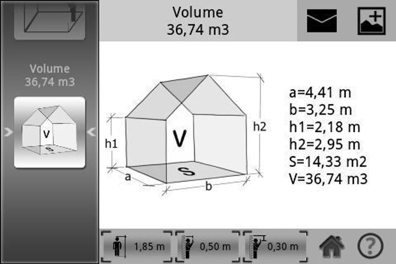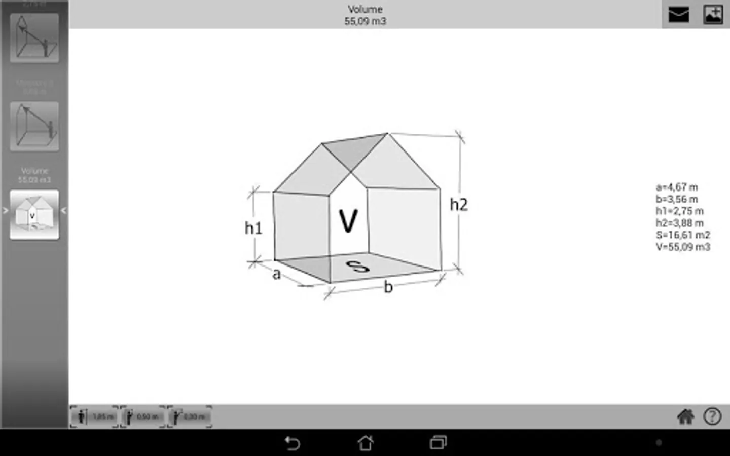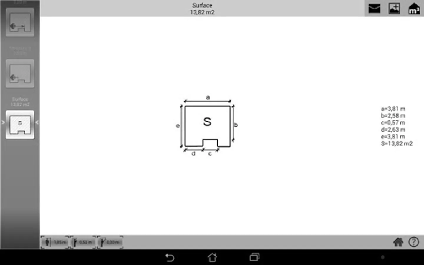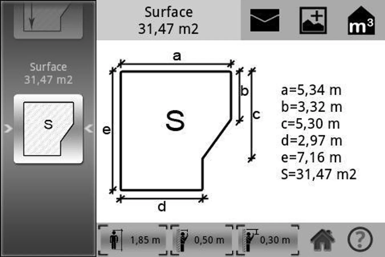 That you are a private individual or a professional (architect, real estate agent, mason, craftsman), M3 allows you to estimate the surface and the volume of any housing environment.