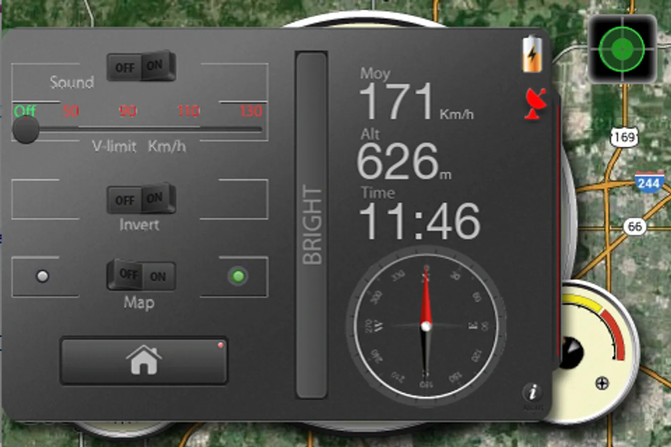 "Speed II" is more than a speedometer. It includes 12 super counters with different looks and original and a real dashboard for comfortable navigation. With a speed limiter, it tells you the speed and overtaking and helps thwart a risk zones. For night use in the car, "Speed II" offers the possibility of a mode "invert" a projection of the meter on the windshield of the vehicle!