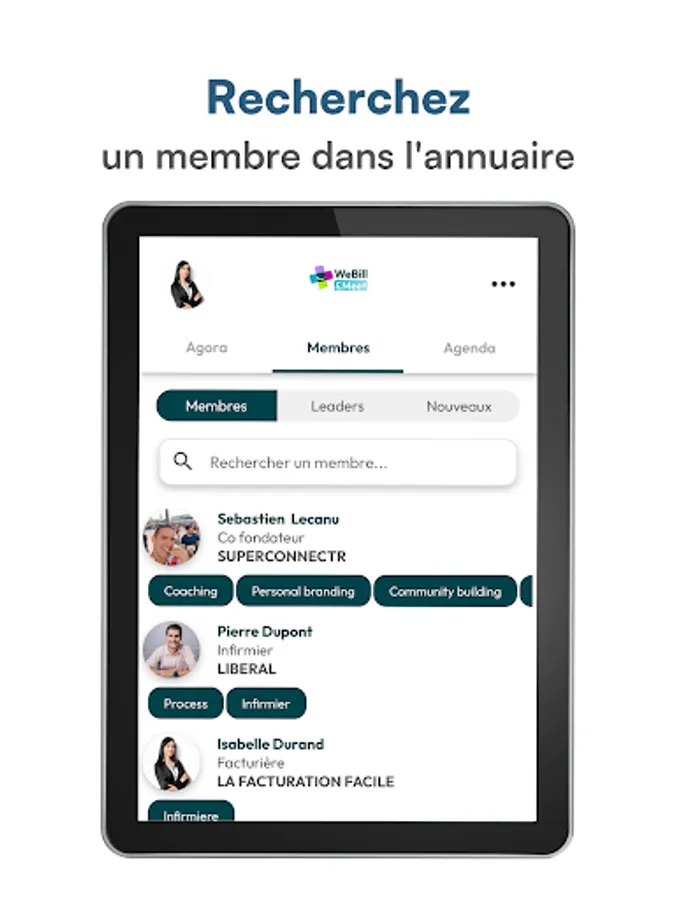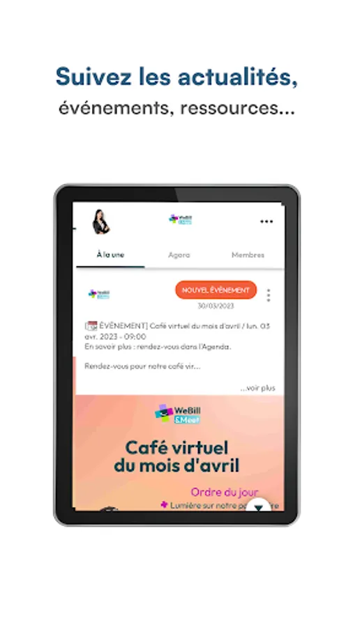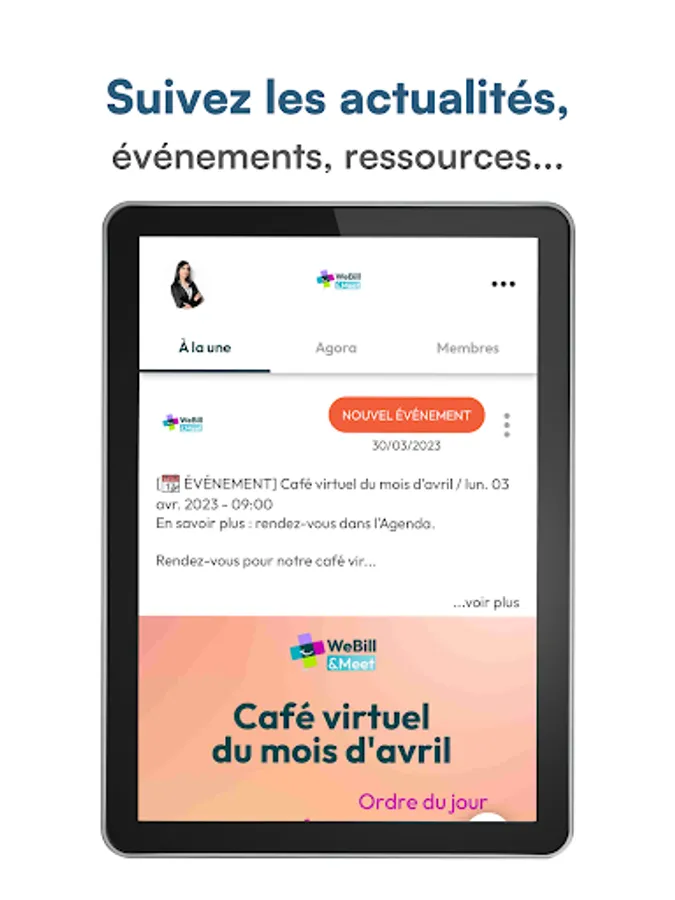 Discuss, connect and follow the news of WeBill Santé, your dedicated training organization. Find the members of the network and gain in efficiency in your work thanks to your new application!