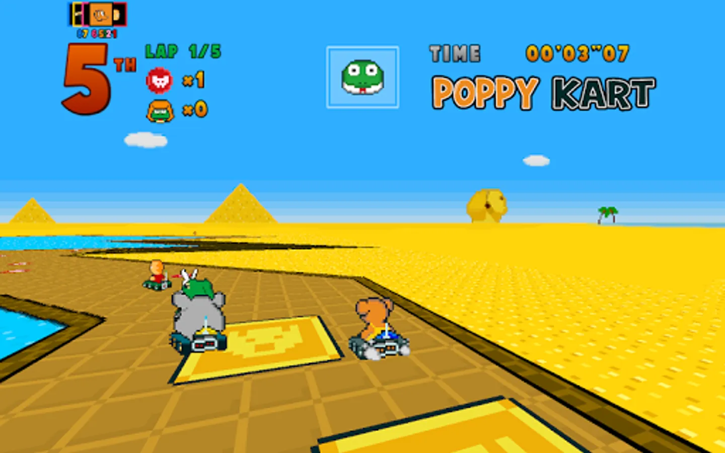 Poppy kart is a funny racing video game in a pixelated world ! The first 7 races are free !