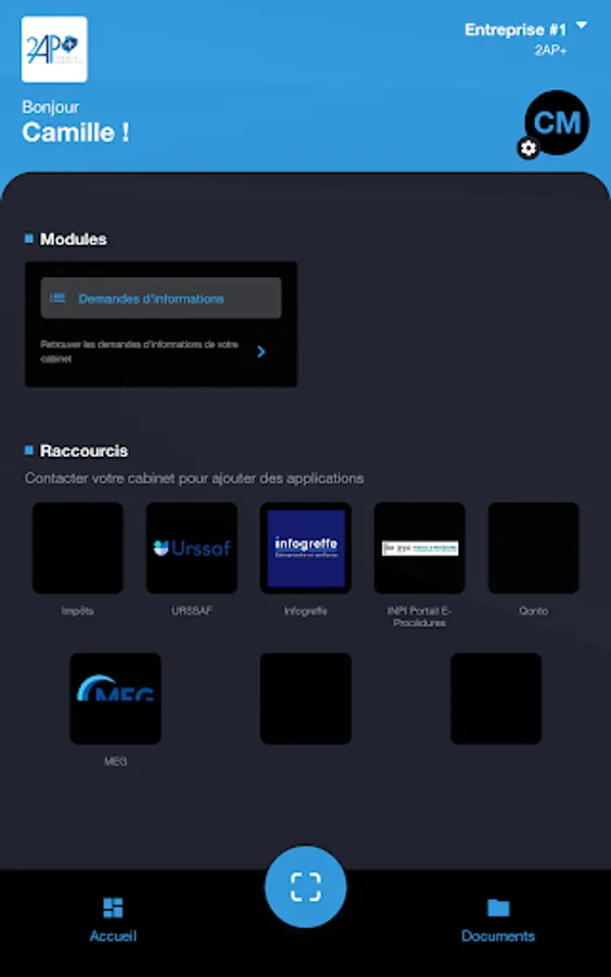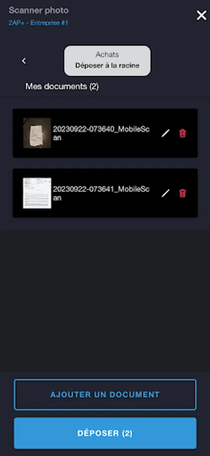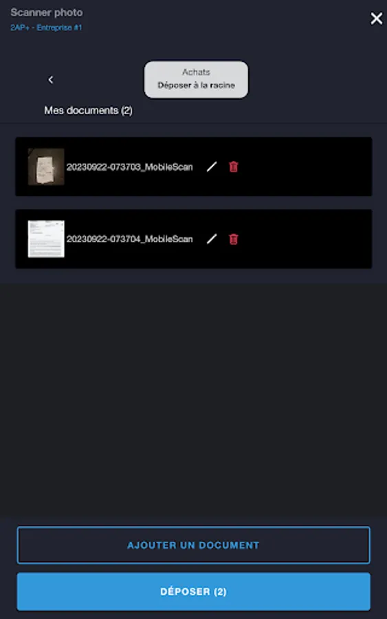 The 2AP + application allows users to scan their documents from their smartphone and send them directly to the platform.