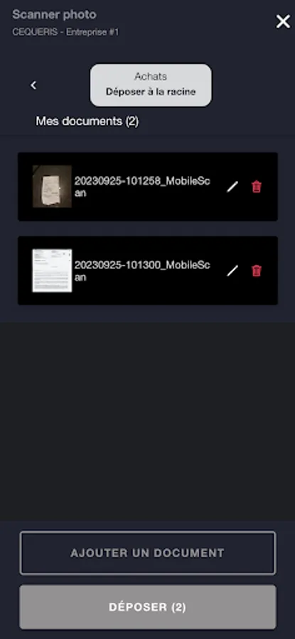 The CEQUERIS application allows users to scan their documents from their smartphone and send them directly to the platform.