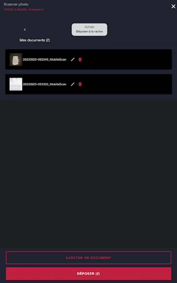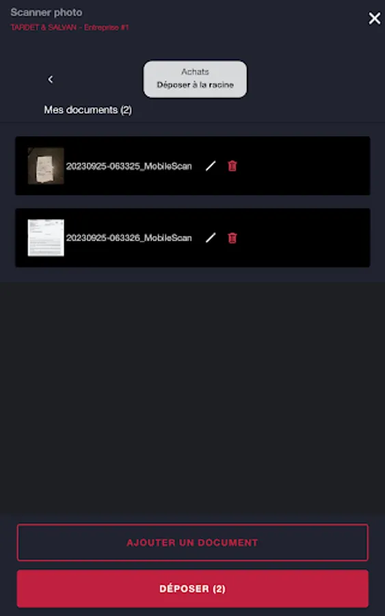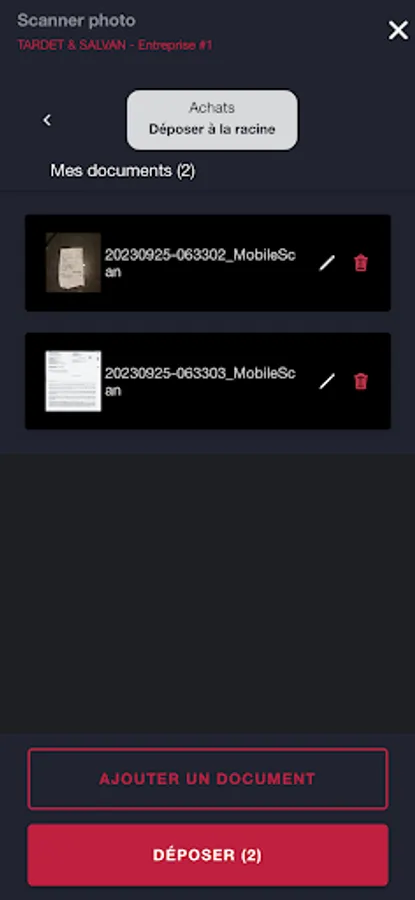 The TARDET & SALVAN application allows users to scan their documents from their smartphone and send them directly to the platform.