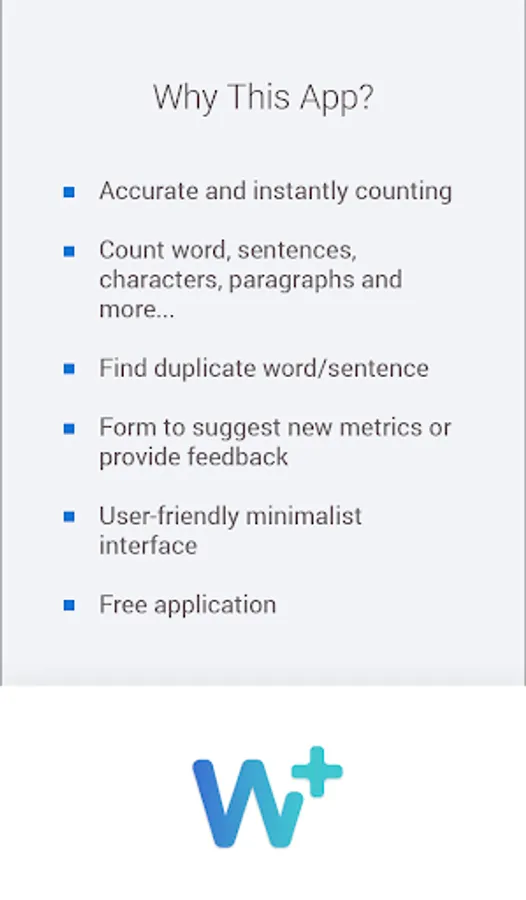 This Word counter application offer also advanced text statistics for premium users. However, our goal was to do something accessible at affordable prices but also an app that you can enjoy for free. That why main statistics such as word and sentence counter, number of characters, paragraph count are available for free. In addition, any free user can save up to two notes.