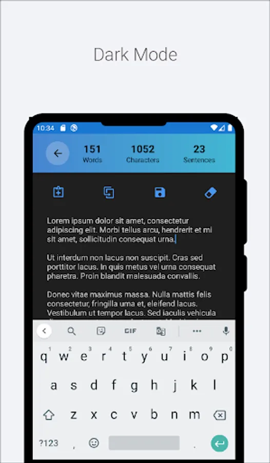 - paste and copy your content to the clipboard of your phone to use them via other apps or share your work