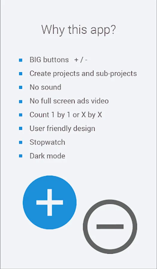 Our main focus was to make a counter app easy to use with a simple and intuitive interface.
