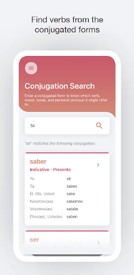 - User-friendly design making the app easy to use and efficient to look for a specific verb or conjugation