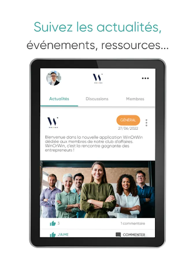Discuss, connect and follow WinOrWin news. Find members of the community and develop your network in your new application!