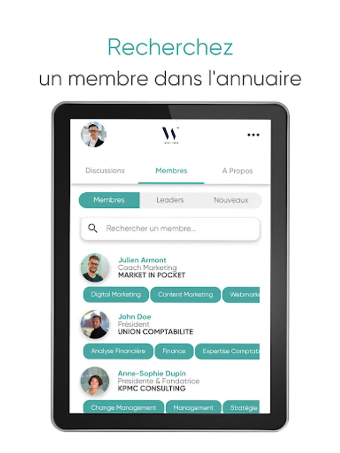 Easily search for a member of the community by last name, first name, company, skill, location... The essentials to facilitate your networking!