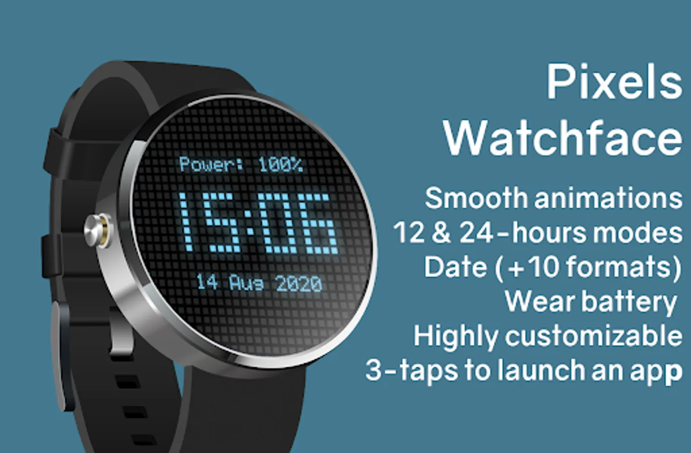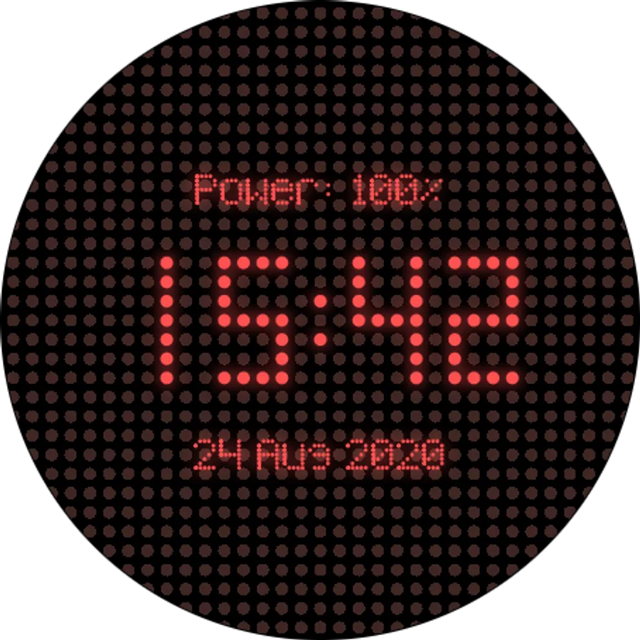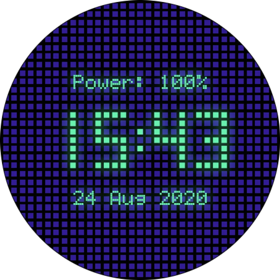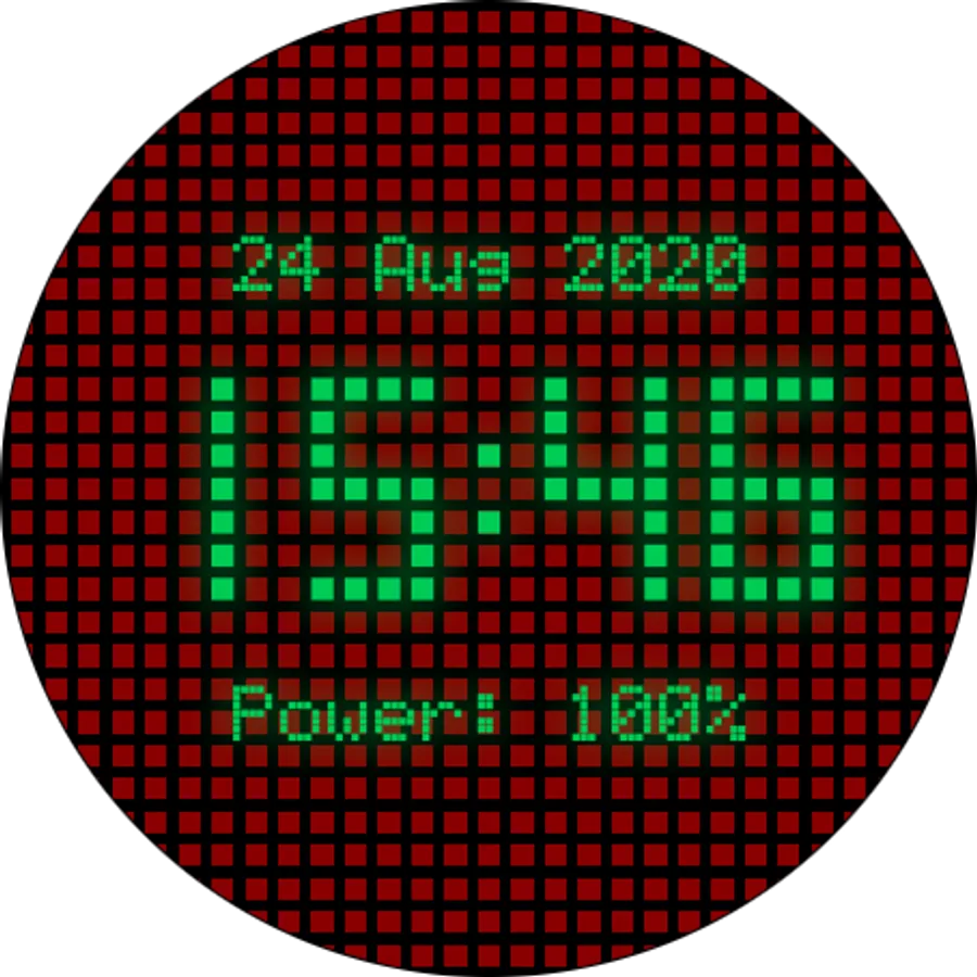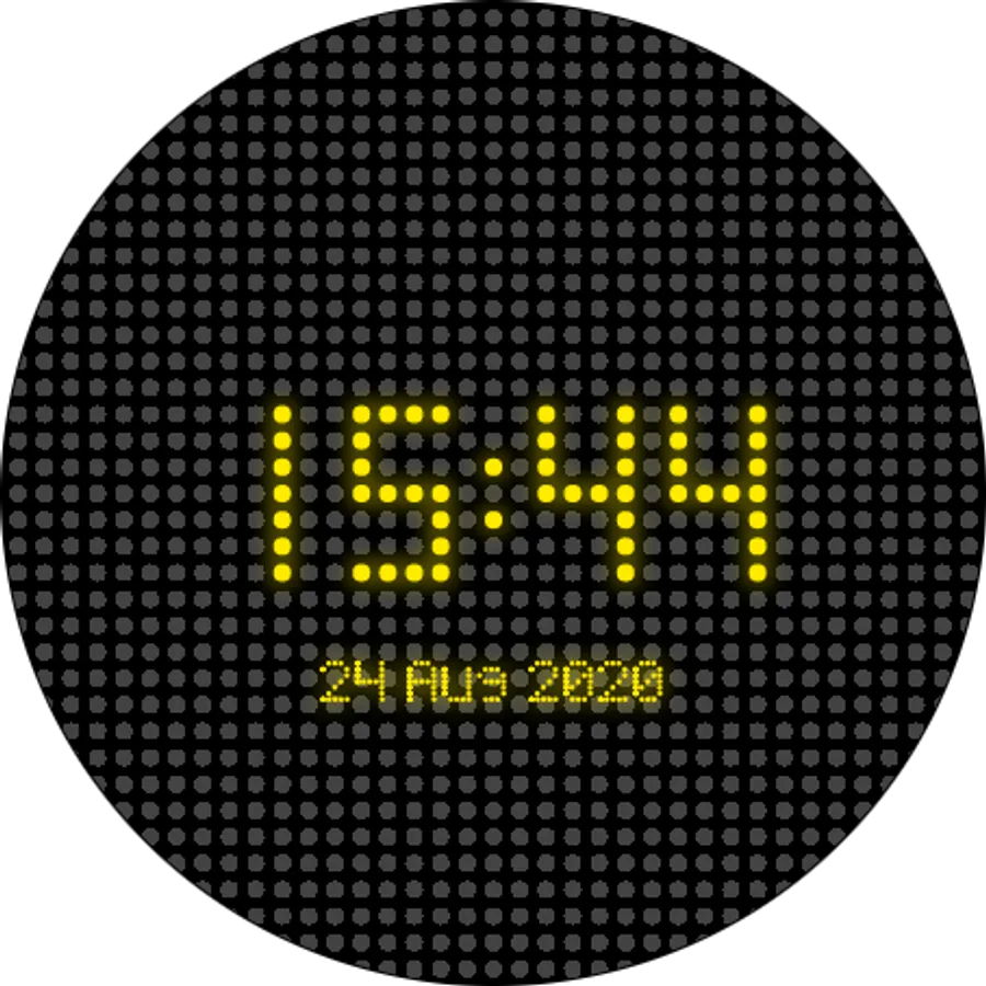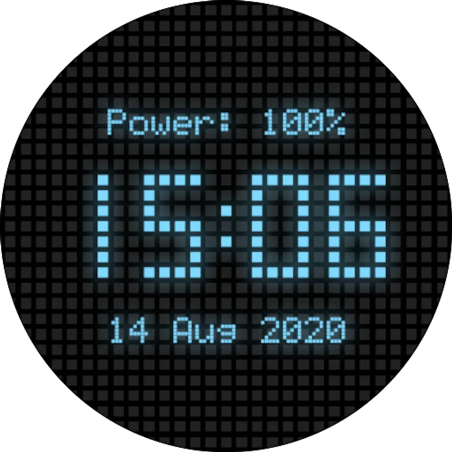 Pixels Watch Face is a clean watch face which displays the clock as glowing dots on a matrix. Digits are smoothy animated when the time is changing.