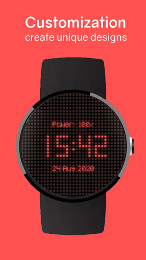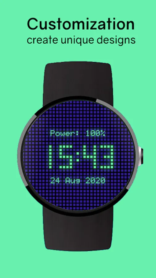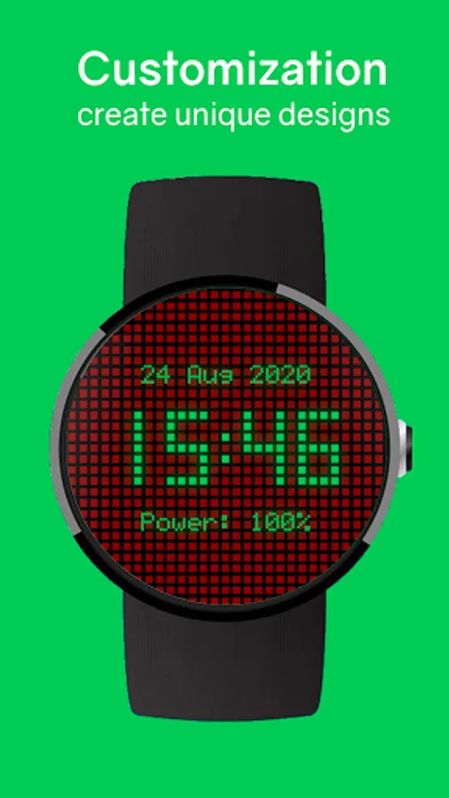 Many colors are available to customize the watch face : change the glowing dots color or all the other dots colors to your taste.