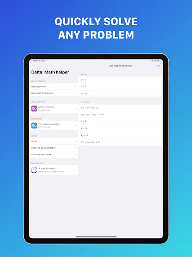 With Delta: Algorithms, quickly solve any math problem with an algorithm. Save time checking your homework or studying for a test, it’s free!