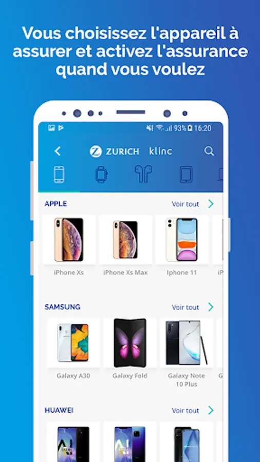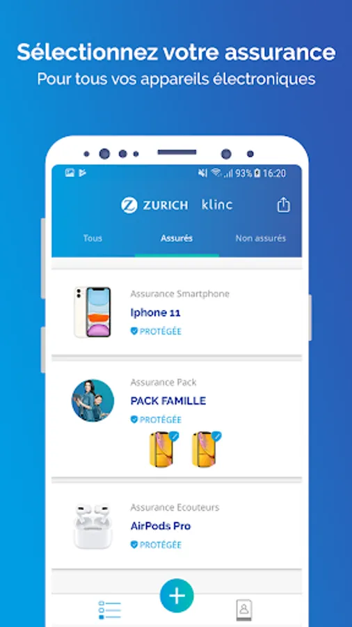 Zurich Klinc is Zurich's online insurance for individuals. Insure your electronic devices and connected objects in record time and take advantage of the coverage offered according to your needs. With Klinc, you can protect what is dear to you easily and instantly.