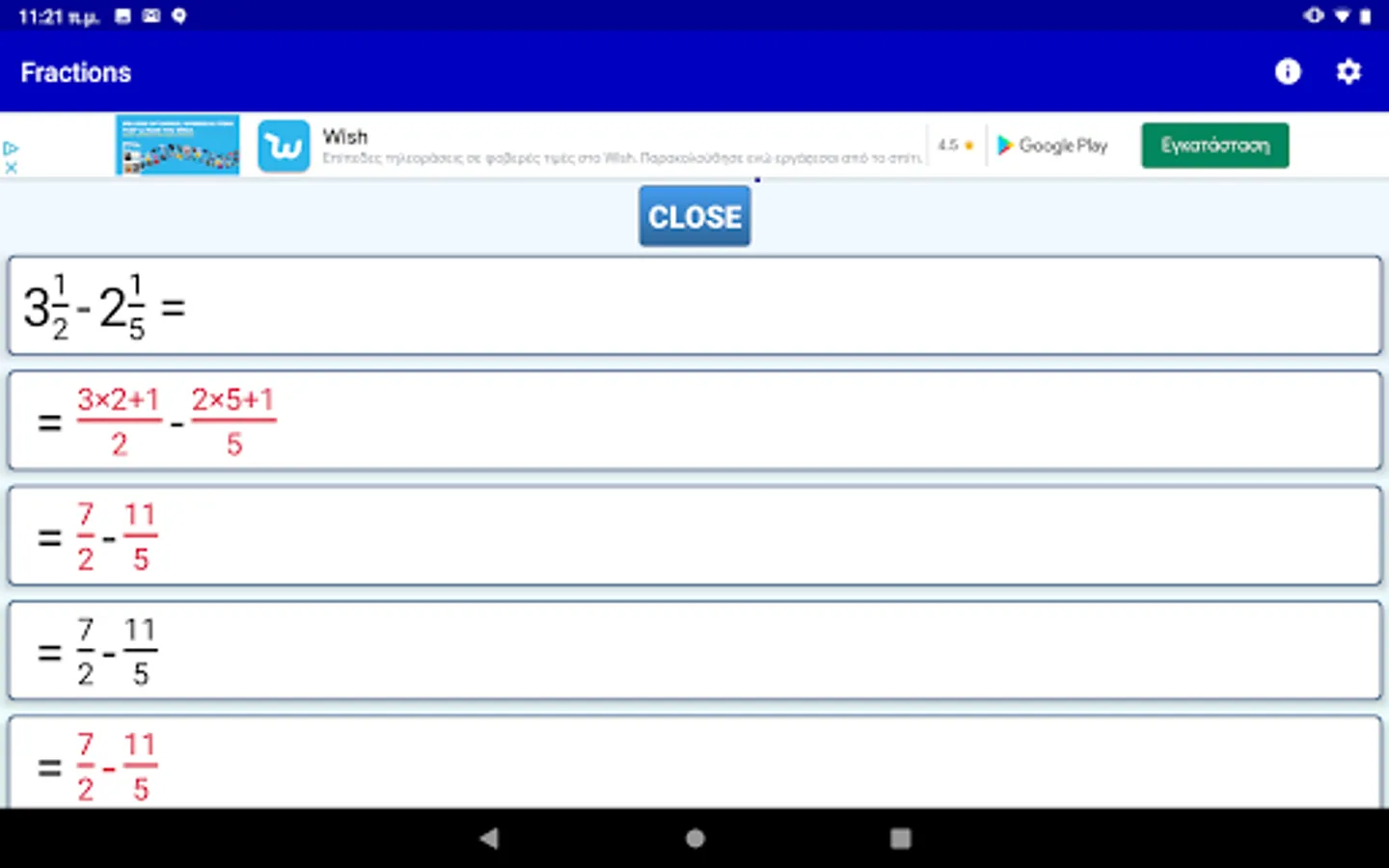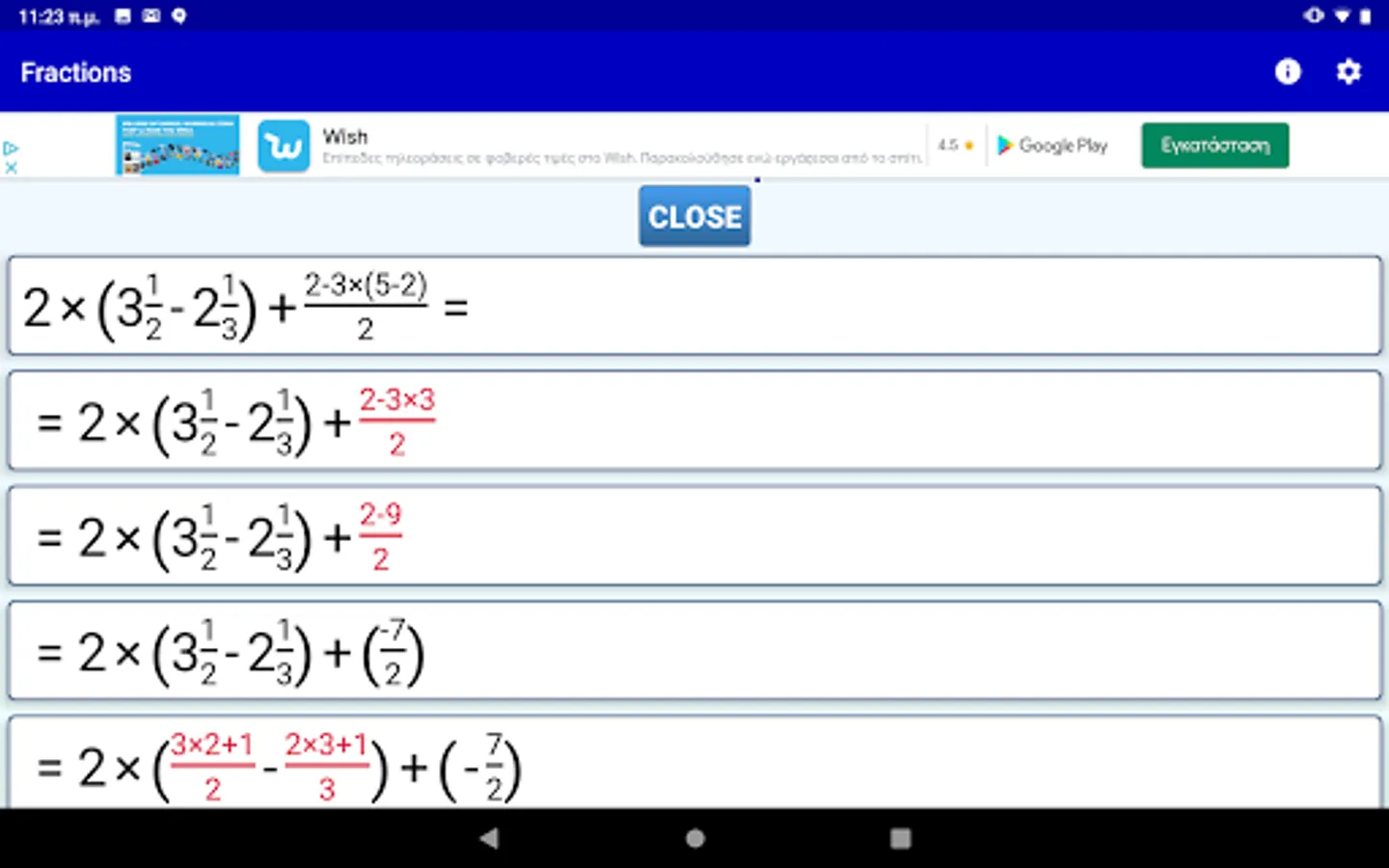 4) Step by step solution for all fraction computations