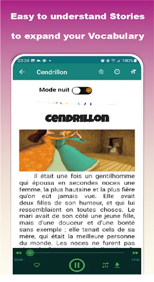 Discover our collection of 180 stories with audio! This app also offers +20 fables and poems as well as +33 songs