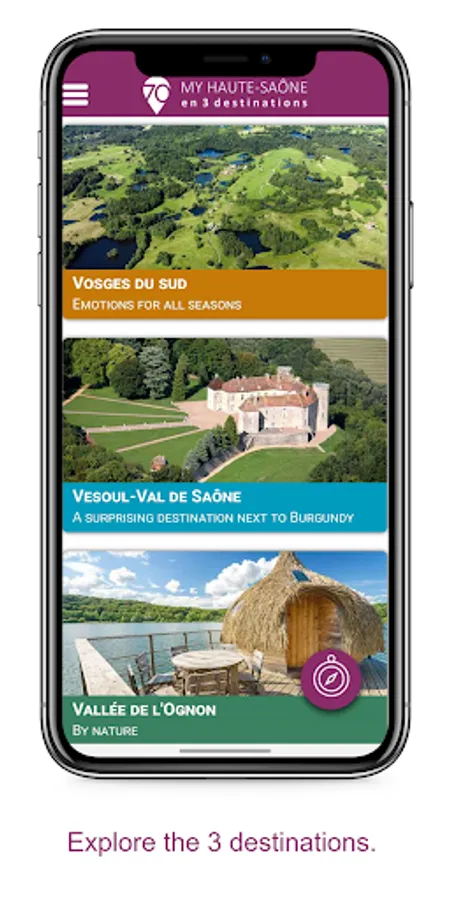 Welcome to Haute-Saône ! This app will help you discover our 3 destinations for a surprising stay : Vesoul-Val de Saône, Vosges du Sud and Vallée de l’Ognon.