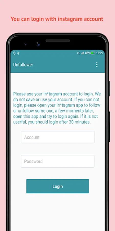 Open Unfollow Users Cleaner for instagram, after you login with your instagram account, there is a unfollowers (who you followed but not follow you back) list