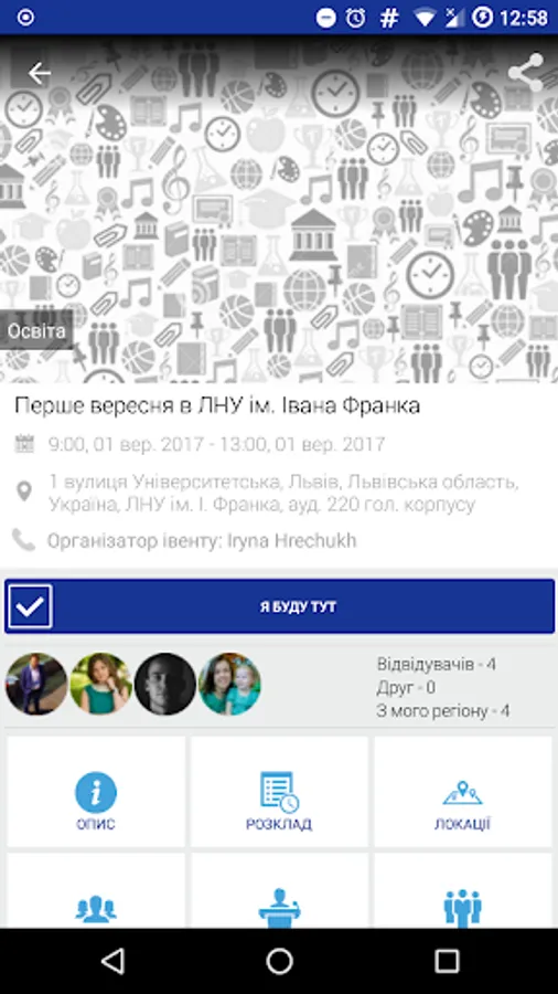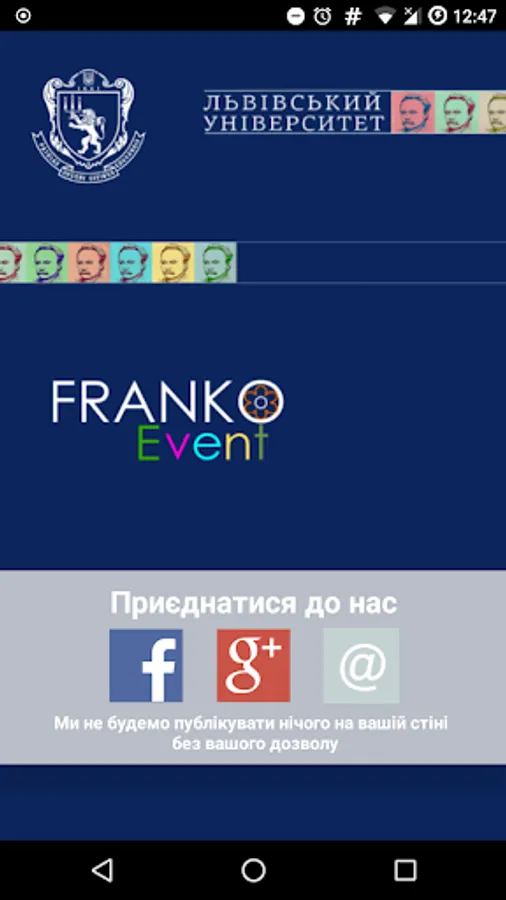 FRANKO-Event - єdina unіversitetska platform yak bezkoshtovno nadaє mob. dodatok to organіzatorіv zahodіv that studentіv of LNU IM. I. Frank.