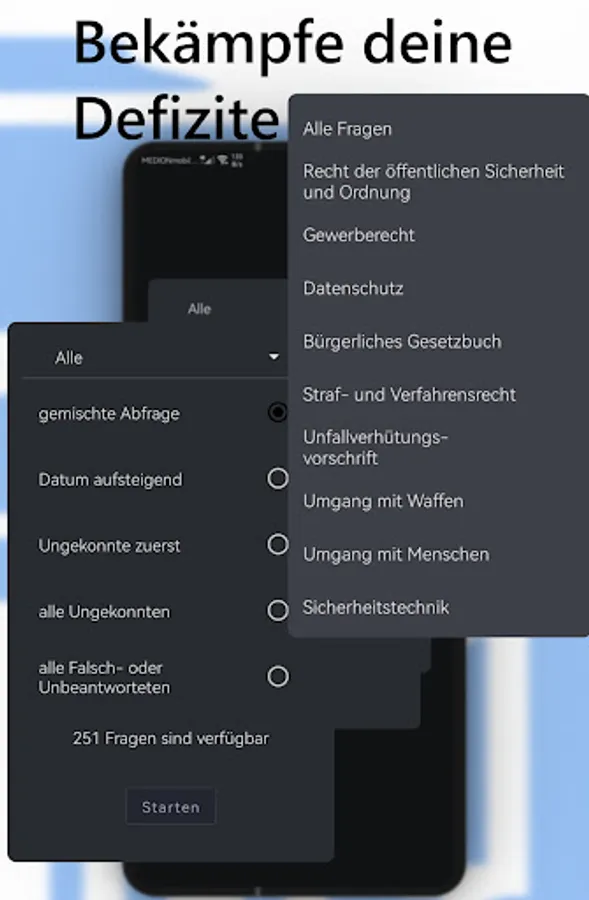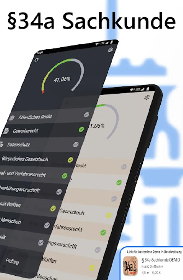 Our app offers you true-to-original exam questions that are closely based on the security regulations (BewachV) and the trade regulations (GewO). They were created based on my own experiences and findings from the exam.
