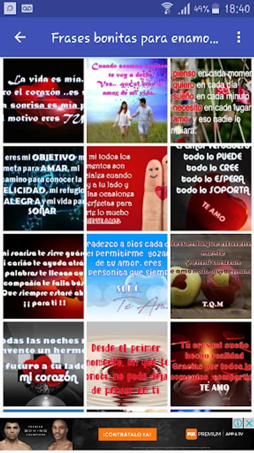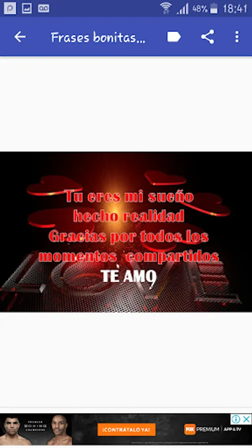 Beautiful way to love your partner! In this great application you will find amazing and cute pictures of Romantic Love phrases. You can download and share with your girlfriend, boyfriend and your loved ones through your favorite social networks like Facebook, WhatsApp, Instagram, etc.
