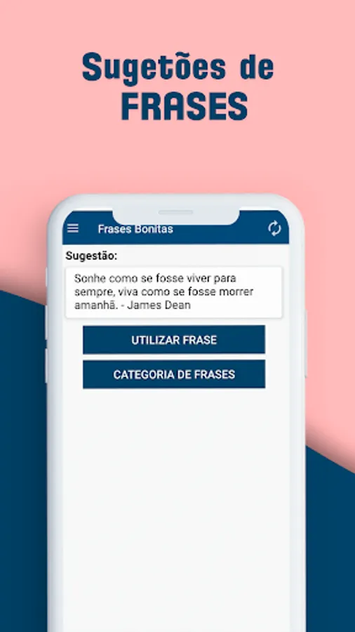 With this app you will have the beautiful phrase of the day plus a list with thousands of phrases and messages ready of diverse categories, such as, love, friendship, relationship, life, God, attitude, self help, among others.