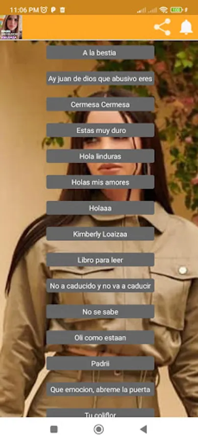 Our application collects sounds and phrases that Kim Loaiza has ever said in her videos.