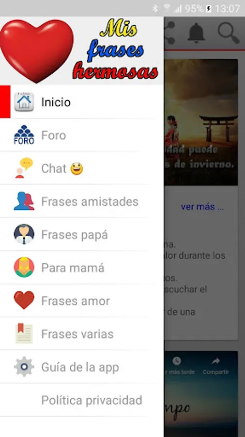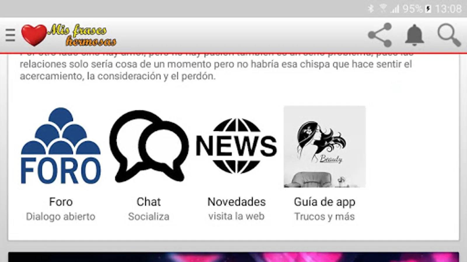 My beautiful phrases, is an application in which you will find wise phrases in addition to being beautiful, with images to share, the interesting thing about this application is that it contains a forum where you can share your thoughts, and you can also give votes to other phrases that seem to you interesting, as well as a chat in which you can socialize with people from different parts of the world. My beautiful phrases is developed for an exchange of encouragement and encouragement between people, so that if you need a word of encouragement, you can write to the administrator to help you with a phrase that will help you continue on the difficult path of life.