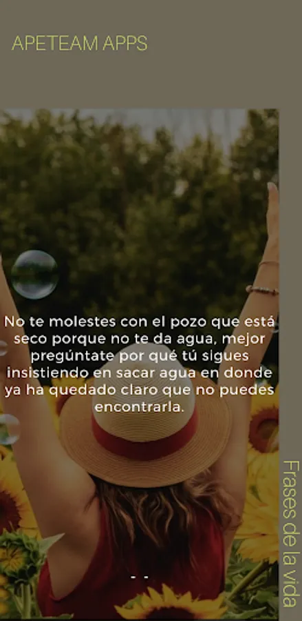 Gracias al apartado visual de Frases de la vida y sabiduría no solo podrás compartir la frase bonita, frase positiva o frase de amor, sino que podrás mandar por whatsapp toda la imagen, siendo todas las imágenes seleccionadas cuidadosamente para evocar sentimientos bonitos y de reflexión, incluyendo de romanticismo incluso.