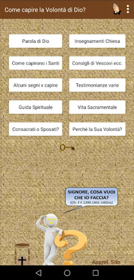 This APP was created on 01/31/2018, in order to help more and more (and for free) many young and old, to better understand the WILL of GOD according to the Word of God and the Teachings of the Church, together with some given and experiential advice, but always "cum Deo et cum Ecclesia".
