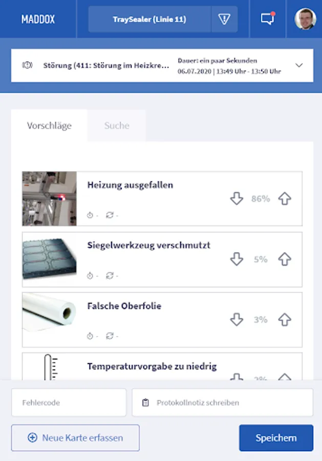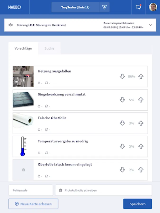 To do this, MADDOX learns to recognize malfunctions based on complex machine data and links these states with experience. This knowledge is proactively presented to the user in the event of an error. An innovative search algorithm based on machine learning processes is a core component of MADDOX and makes large databases, photos and videos easy to use. Users can confirm, correct, reject or add to these suggestions. As a result, MADDOX learns like a colleague with every fault.