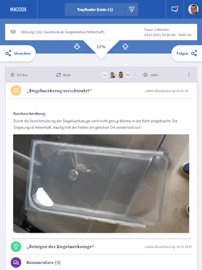 This app only works in conjunction with the MADDOX assistance system, which supports operators and technicians on processing and packaging machines in troubleshooting.