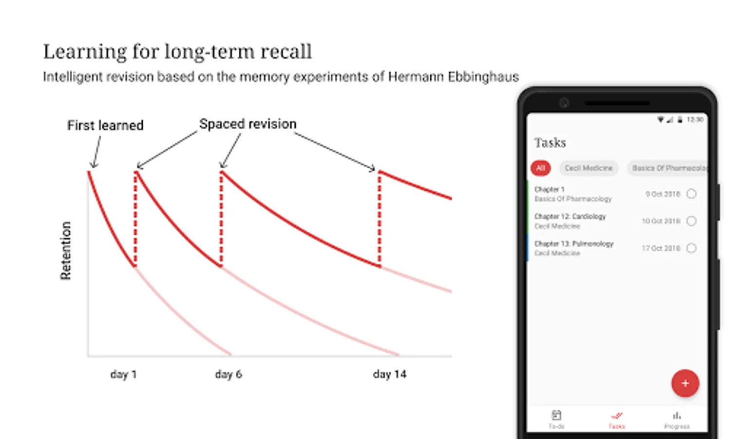 Spaced repetition is based on the ideas of Hermann Ebbinghaus, who created the "forgetting curve".