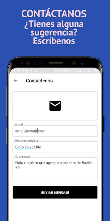 Stickers of trending YouTubers, Stickers of Presidents of countries, Stickers of Peruvian slang, Mexican phrases, Freestyle Stickers, Homer Simpson Stickers, SpongeBob and Patrick Stickers, Bob the Builder Aea Stickers, Pocoyo Stickers, Anime Stickers , The Simpsons Stickers, Animal Stickers, Love Phrase Stickers, TV Series Stickers, Musical Stickers, Random Stickers, Clash Royale Stickers, Toxic Stickers.