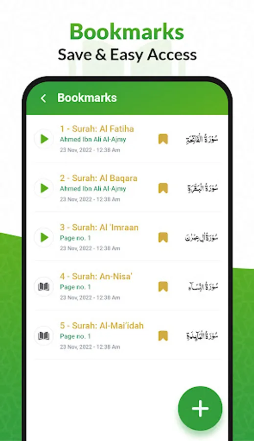 Bookmark: The abrupt interruption can let you forget the previous reciting page, so before leaving, use bookmarks option of Quran Karim for the continuity of tilawat e Koran Pak from the exact point.