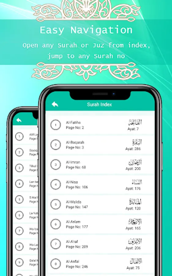 Open any Para or Surah directly from index. Al Quran offline has all 30 chapters and 114 Surahs to persuade readers that they are entertained from all aspects. Resume option will take to the page where you left reading last time.