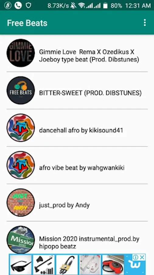 This app provides a lot of categories and genres of music for upcoming artistes to easily select their preferred beats and record their songs to it.