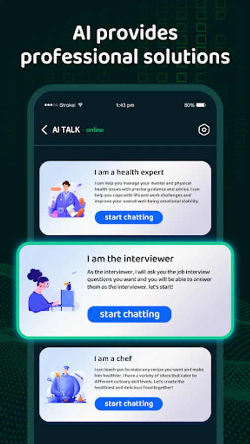 One of the main features of the application is that as an AI writer. It can understand and answer many types of questions because the AI system has been trained through a machine learning process with a large amount of data. This also makes it a perfect personal AI assistant to understand and respond to a variety of inputs in the most natural and human-like way. Whether you want to chat about a specific topic, ask for information or need help with a task, AI chatbot will always answer you quickly and accurately. You can also copy responses from the AI chat bot and share them quickly. GOT – AI Chat, AI Friend is an expert in every field, for example with a few prominent areas: