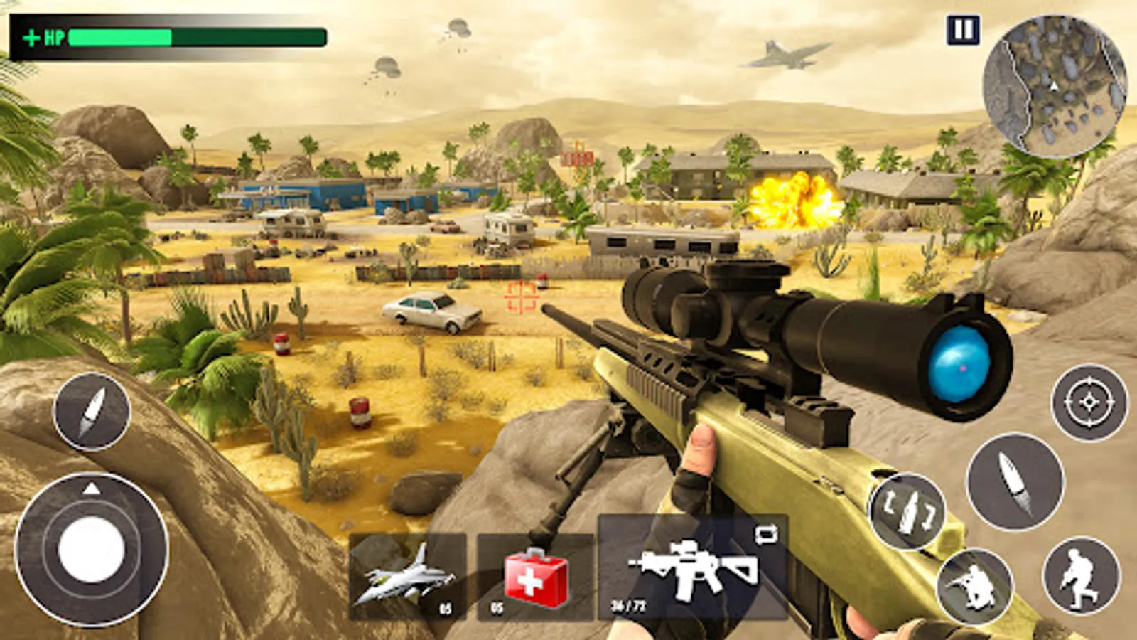 Select fast paced FPS shooting gun games for best time of action and adventure games. Get ready to show the best hero shooter of desert sniper games 3D. This is your call of the best sniper in town to become the savior of the desert games. You are a one man army in a desert sniper war game. Play offline gun games in less mb. Choose your favorite location from the map and enter the modern sniper gun games for non stop shooting in online games. This is a world for sniper assassins and hunter shooters 3D. War gun games for team shooting games players! Shoot like the best sniper 3D in online shooting games. Take sniper attacks to the next level! Assassin missions and desert sniper strike shooters in the battle games 2023. Keep upgrading your sniper for modern gun shooting strikes. No one can stop your victory once you get the best shooting training of US Special Forces Gun Games in sniper 3d games. Have fun of deadly crossfires and war sniper games 3D available for free to download. Enjoy online and offline shooting games any time for no cost.