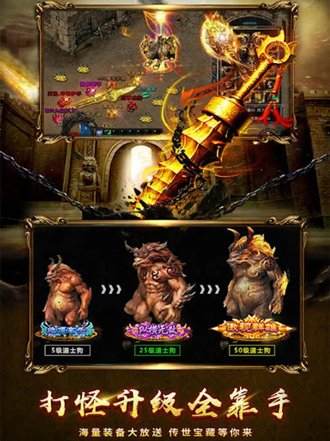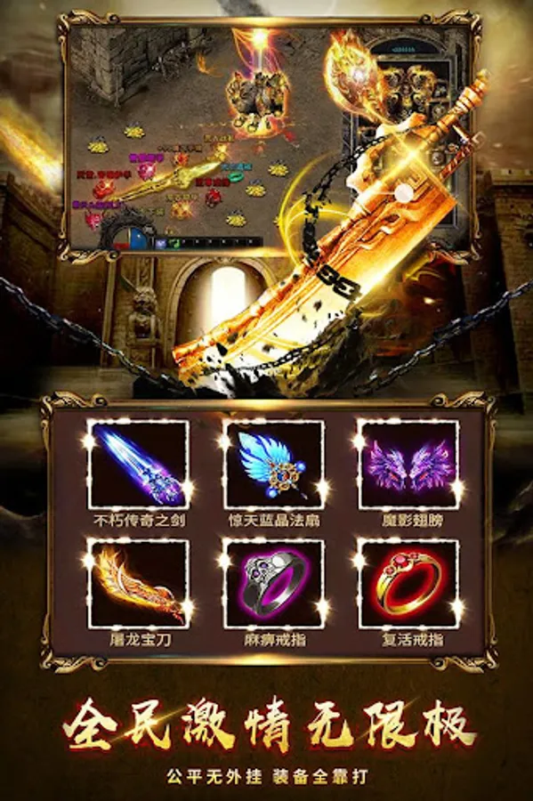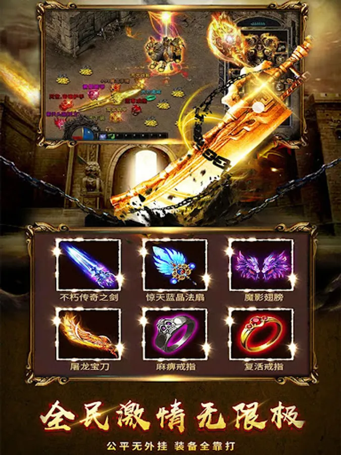 【游戏介绍】经典版本,热血攻杀。激战世界BOSS,神装全屏掉落,装备无绑定,自由交易无尽财富等你创造。沙城霸主已经归来,玛法大陆风云在线,你,还在等什什么........